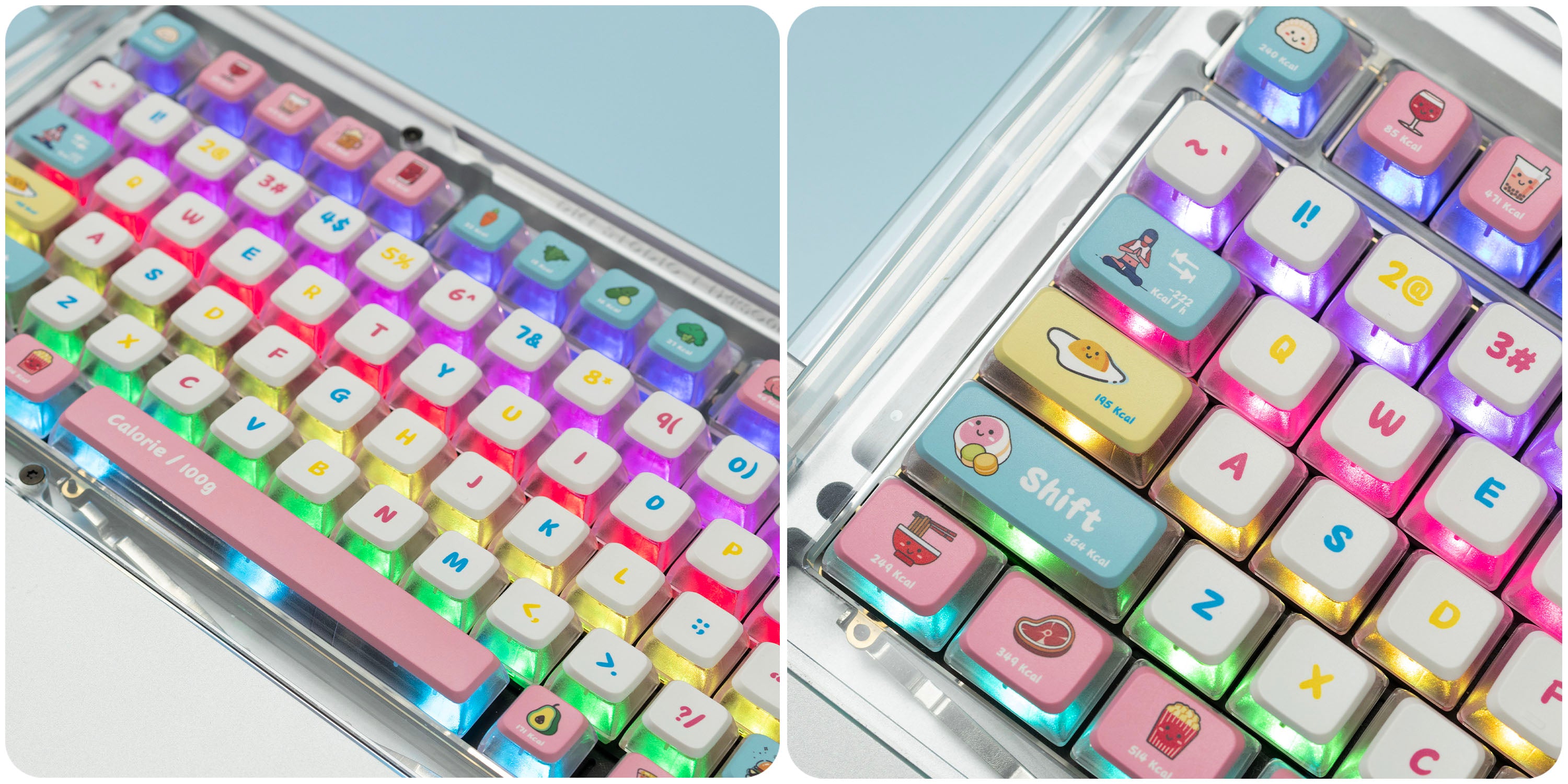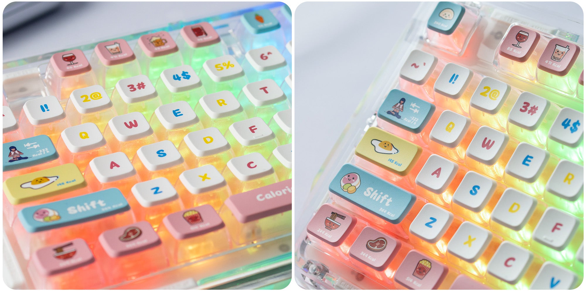 Typically, the typing sound of a keyboard is closely intertwined with the keyboard's internal structure and the nature of the switches employed. However, it's worth noting that these keycaps possess a thickness of 1.5mm and employ high-quality materials, which can contribute to enhancing the typing sound to a certain extent.