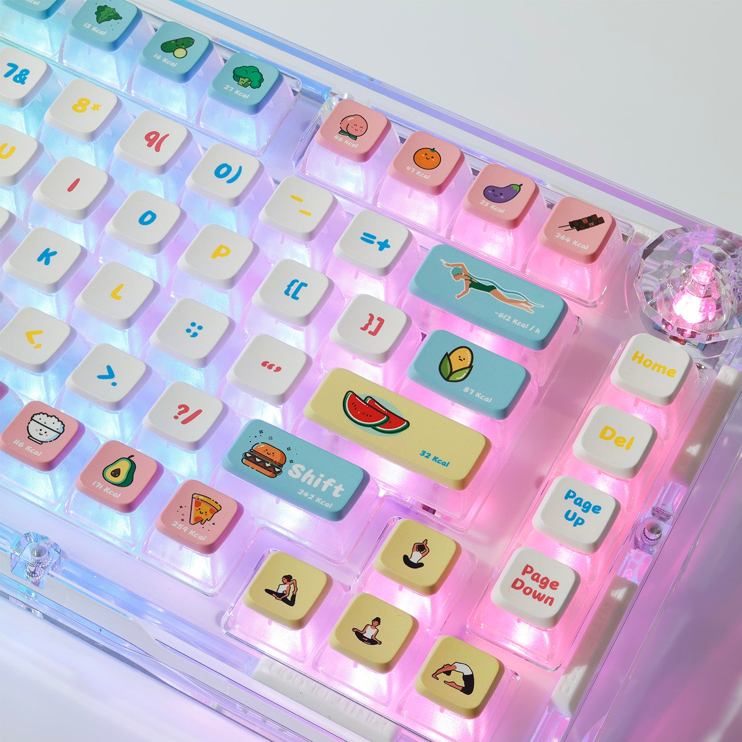 Keycaps in the ASA profile closely resemble the height of OEM profile keycaps, with certain keys being slightly taller. This design conforms to ergonomic principles, enhancing user comfort. Additionally, these keycaps offer a visually layered appearance, which, when combined with various themes and colors, contributes to a more visually dynamic presentation.