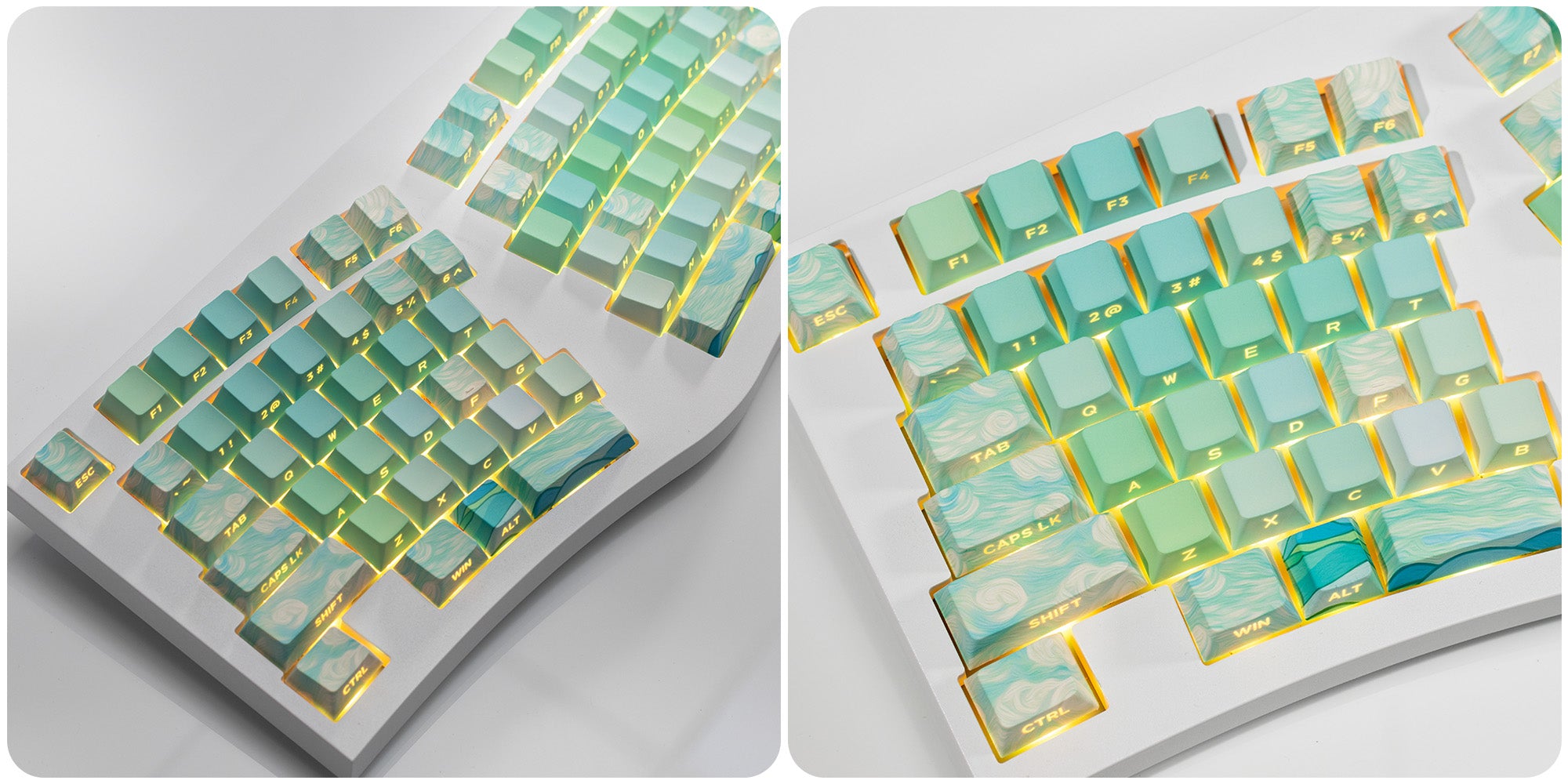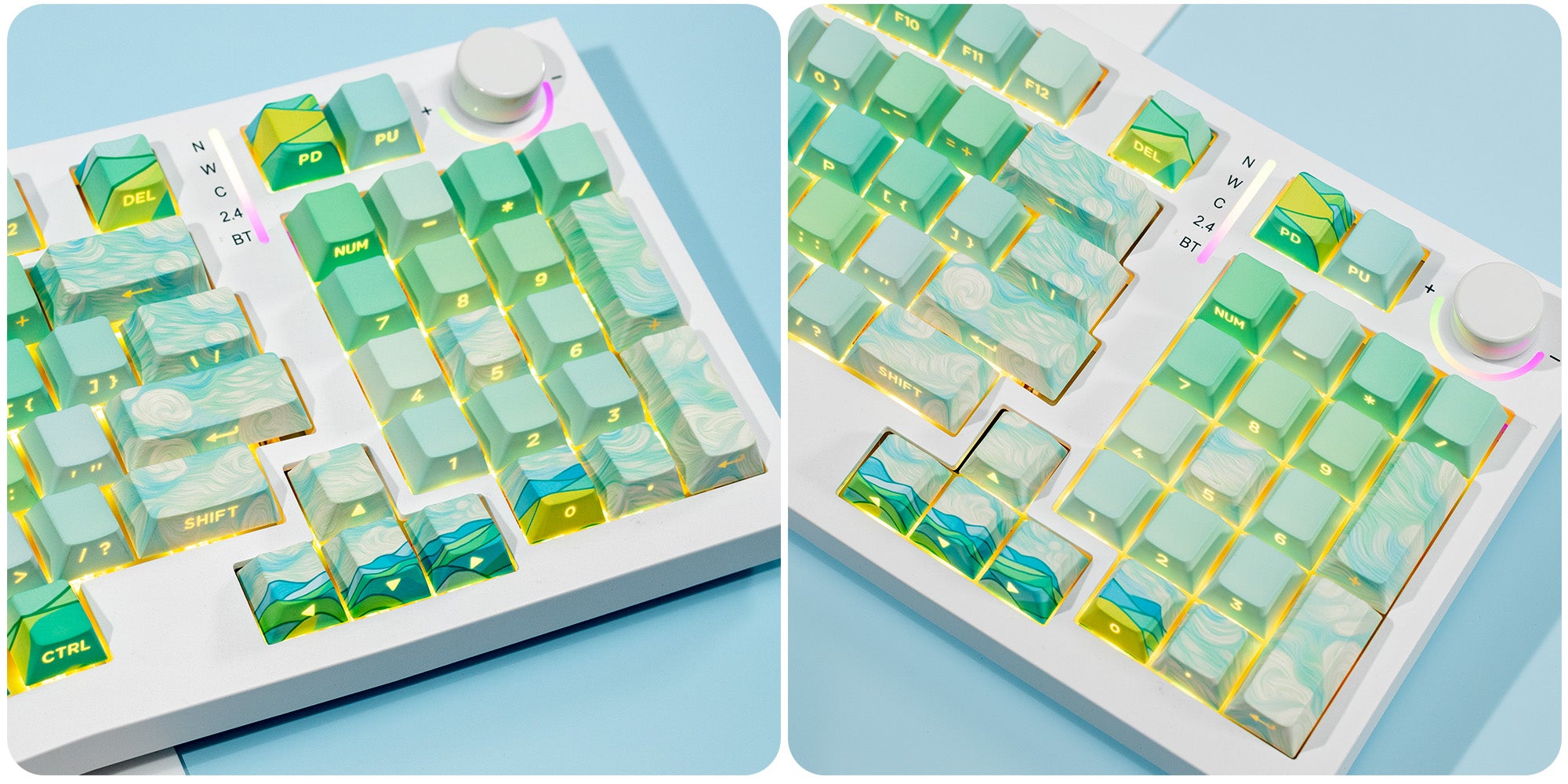 Typically, the typing sound of a keyboard is closely intertwined with the keyboard's internal structure and the nature of the switches employed. However, it's worth noting that these keycaps possess a thickness of 1.5mm and employ high-quality materials, which can contribute to enhancing the typing sound to a certain extent.