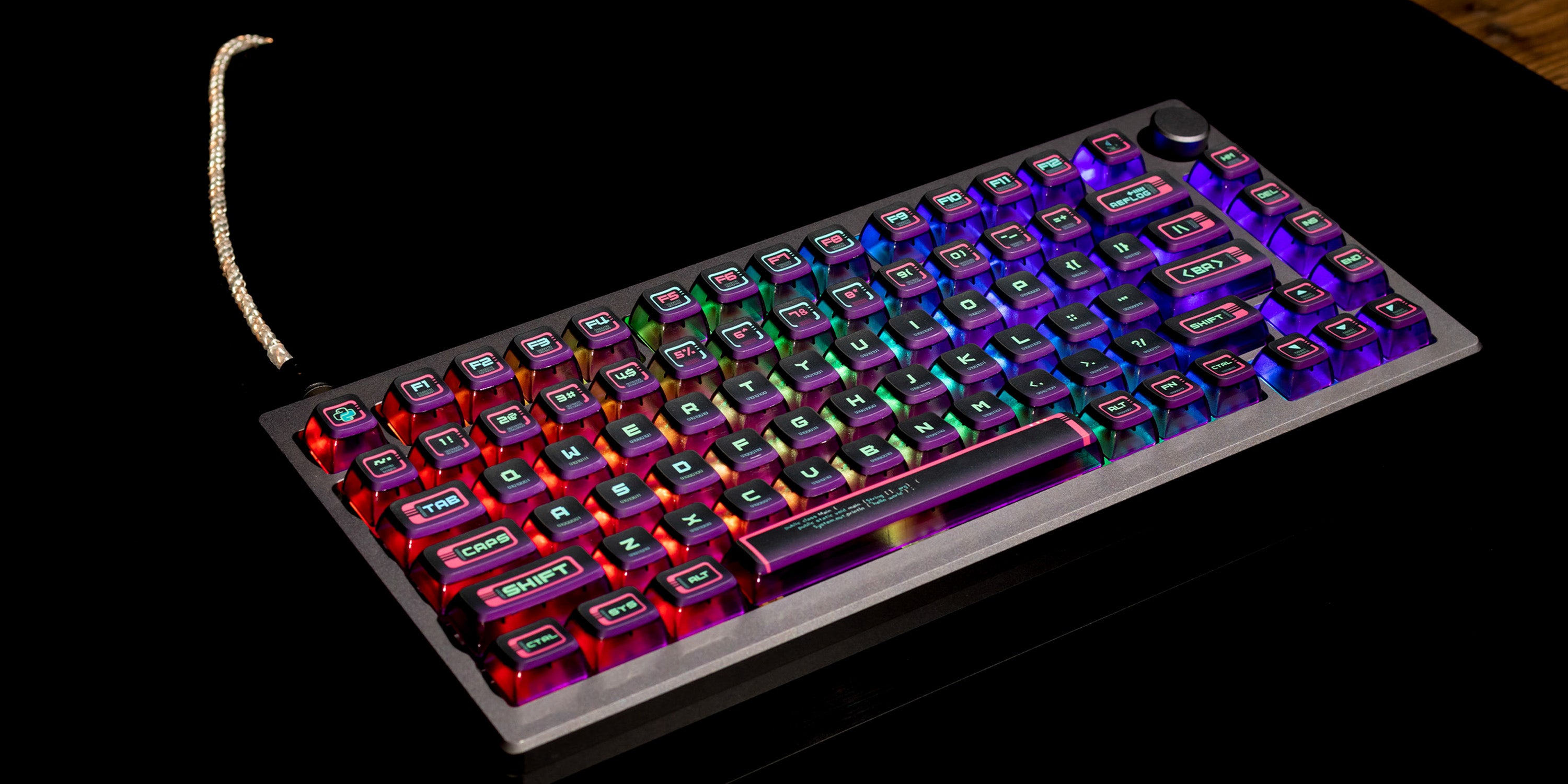 Typically, the typing sound of a keyboard is closely intertwined with the keyboard's internal structure and the nature of the switches employed. However, it's worth noting that these keycaps possess a thickness of 1.5mm and employ high-quality materials, which can contribute to enhancing the typing sound to a certain extent.