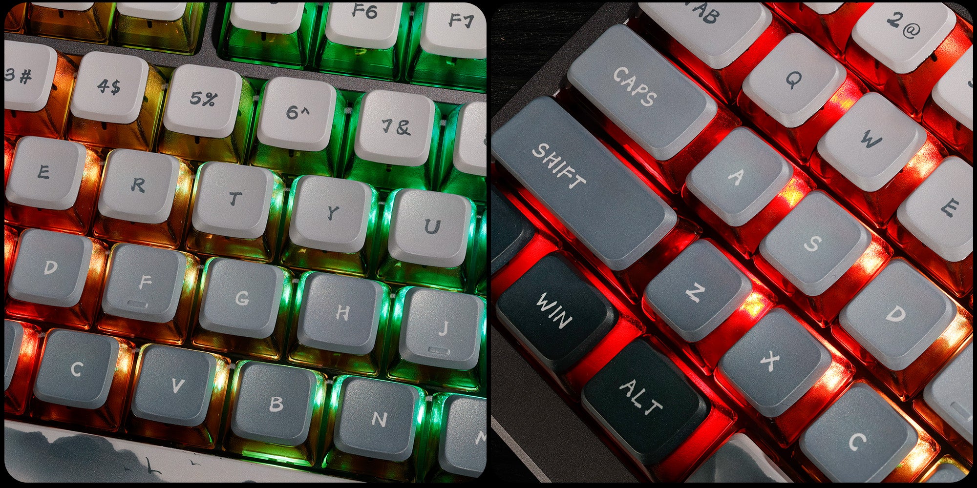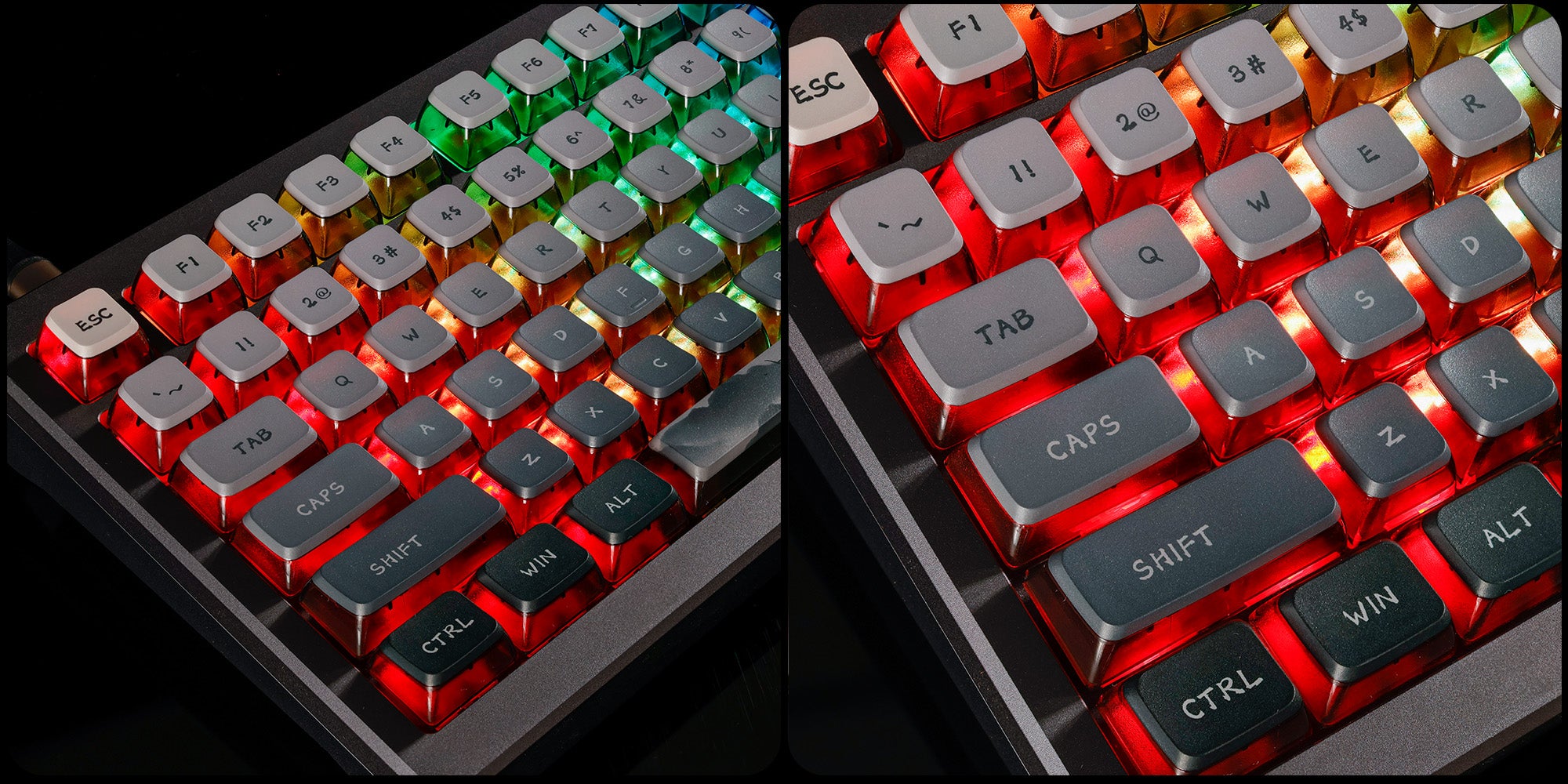 Typically, the typing sound of a keyboard is closely intertwined with the keyboard's internal structure and the nature of the switches employed. However, it's worth noting that these keycaps possess a thickness of 1.5mm and employ high-quality materials, which can contribute to enhancing the typing sound to a certain extent.