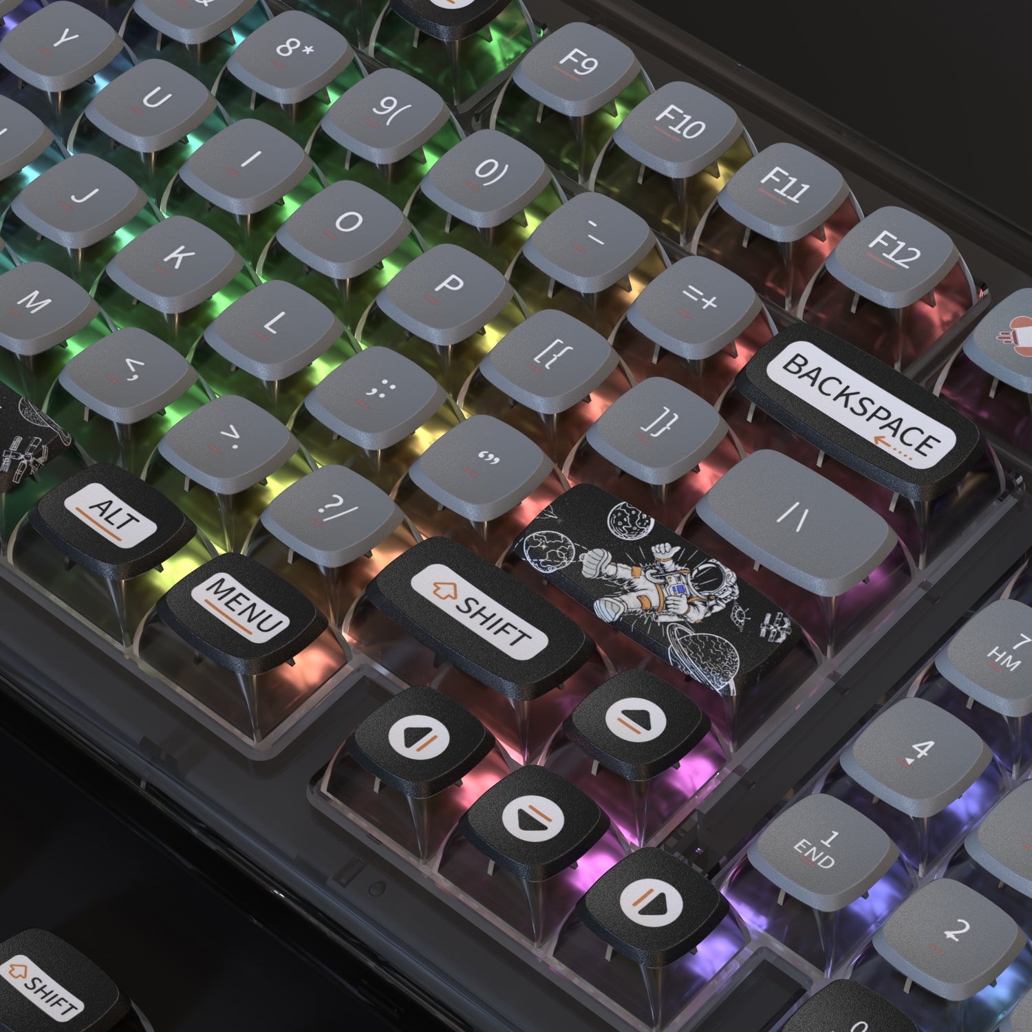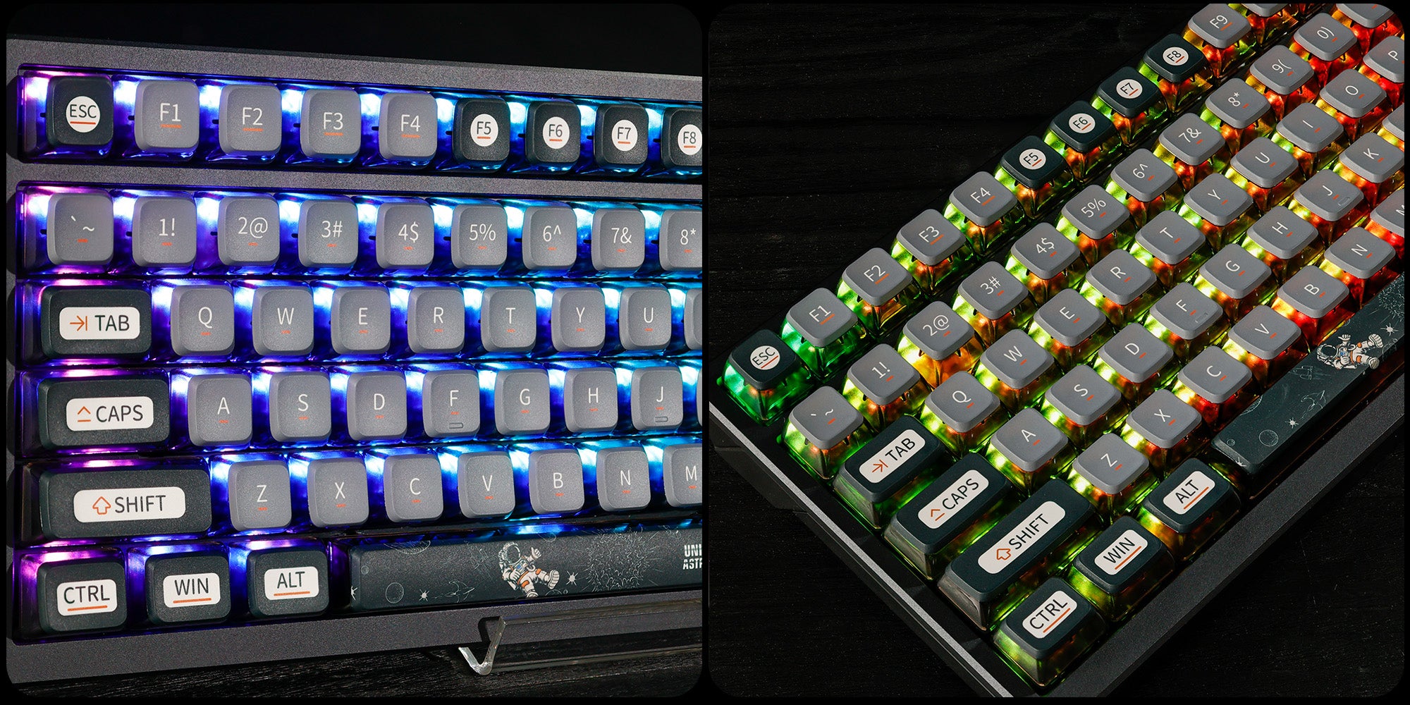 Typically, the typing sound of a keyboard is closely intertwined with the keyboard's internal structure and the nature of the switches employed. However, it's worth noting that these keycaps possess a thickness of 1.5mm and employ high-quality materials, which can contribute to enhancing the typing sound to a certain extent.